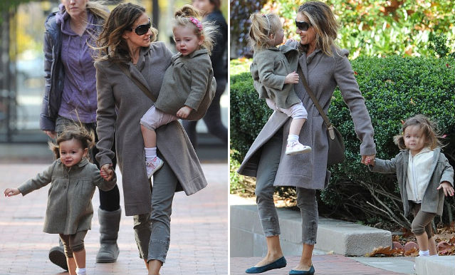 Tal mãe tal filhas: Sarah Jessica Parker vestiu Marion e Thabitha com o mesmo casaco,comum para gêmeas,mas ela fez parte também se vestiu com o mesmo casaco,em um passeio em New York na última sexta (11-11).